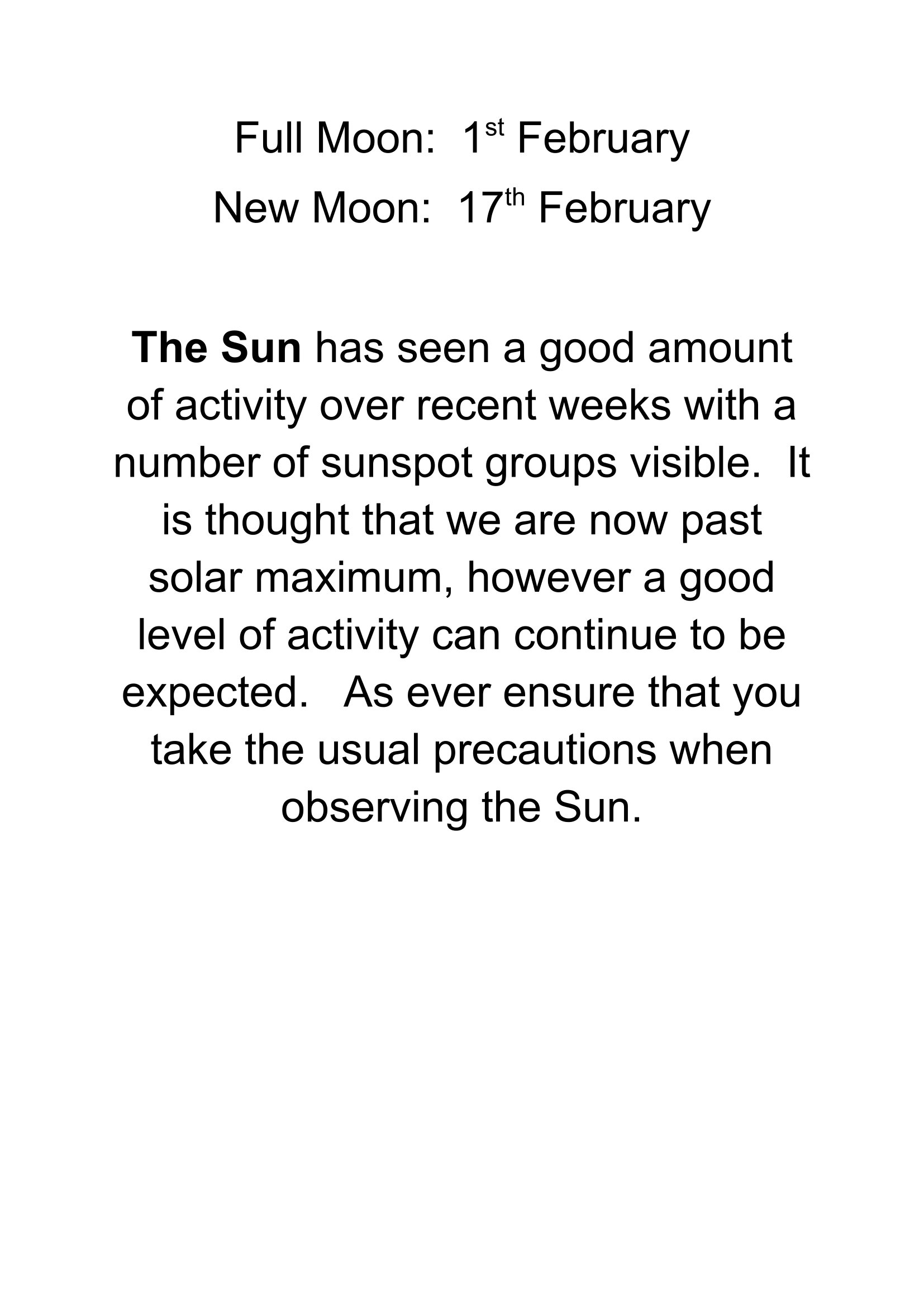 Our regular monthly newsletter is emailed to members. Featuring society news, observing suggestions and our own members observations