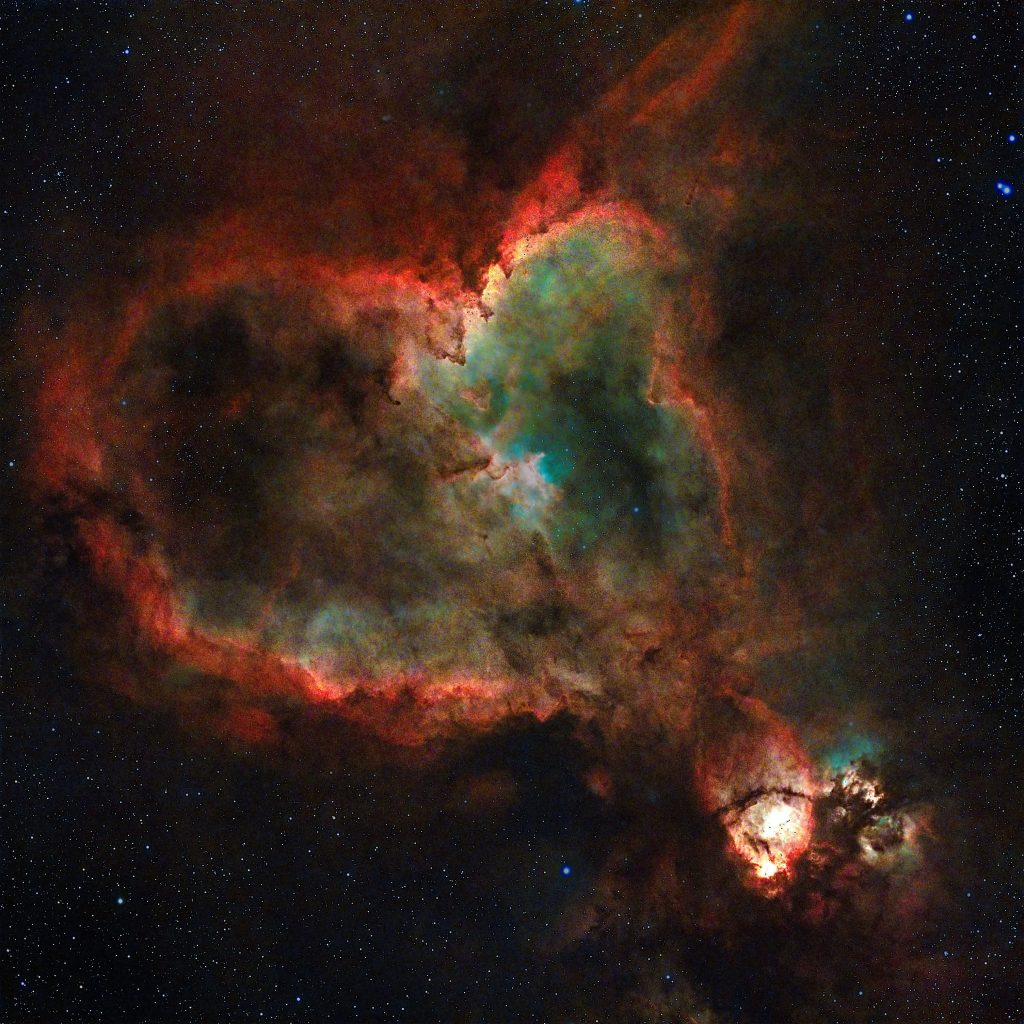 The Heart Nebula is an emission nebula which lies 7,500 light years away in the constellation of Cassiopeia.