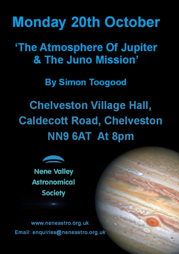 Our meeting on 20th October sees Simon Toogood speaking to the society with a presentation about the atmosphere of Jupiter.